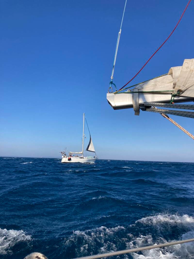 De Pullundria vaart voortdurend bij ons in de buurt. Zij gebruiken slechts het voorzeil; geen grootzeil en geen boom. En ja, eerlijk is eerlijk; ze gaan bijna net zo snel. En dat zonder daarvoor tientallen ‘vermoeiende’ handelingen te moeten doen. ’s Avonds in Cádiz vragen Hannah en Marvin zich dan ook lachend af: Waarom maken jullie je zo druk? Met alleen een voorzeil gaat het toch ook? We wisten er even geen antwoord op.