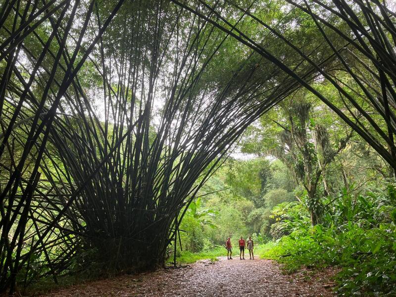 Fregatvogels zweven superieur hoog in de lucht en vallen af en toe naar beneden om een vis te pakken. Pelikanen plonsen frequent, en overigens erg onelegant, in het water om een paar visjes in hun snavelzak op te scheppen. Onder de palmen en in de bossen zien we kolibries en andere voor ons onbekende soorten. Er zijn hier minder verschillende vogels dan in Gambia en Suriname, maar per soort zijn er erg veel. En ze zijn niet schuw. Tijdens een wandeling ervaart Geert dat het in het regenwoud behoorlijk nat en glibberig kan zijn. Zijn linker voet glijdt naar rechts en hij valt zijdelings in een dikke laag modder. Gelukkig blijft de schade beperkt tot vieze kleren en een gekrenkt ego.
