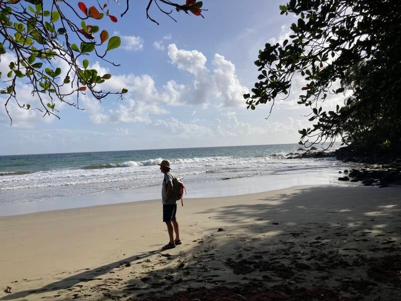 Het land is, mede door de oliewinning bij Trinidad, redelijk welvarend, maar Tobago is het armst van de twee eilanden. We trekken op met een paar andere zeilers, maar er is relatief weinig zeiltoerisme. Het eiland ligt te ver weg van Martinique en omgeving, waar de grote verhuurbedrijven zijn. Daardoor hebben we het regenwoud en de spectaculaire watervallen vrijwel voor ons zelf. Samen met onze vrienden Gerco en Annemiek huren we een auto, bekijken we een deel van het eiland en maken we een paar mooie wandelingen. We zijn vooral onder de indruk van het immens hoge ‘kathedraalbamboe’. We ankeren in een drietal baaien aan de westzijde van het eiland. We worden steeds handiger om met de kano aan land te gaan, maar Gerco en Annemiek ervaren aan den lijve dat dat soms best lastig is; hun bijboot slaat om en ze halen een nat pak. De baaien lijken exact op de foto’s die je in vakantiefolders ziet: zonovergoten witte stranden van een paar meter breed met daarachter een rij gebogen en wuivende kokospalmbomen waarvan de vruchten op het strand liggen.